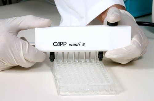 CappWash pladevaskeren er en ideel ELISA-pladevasker til arbejde i mindre skala. Den er enkel, kompakt og prisvenlig og fås i versioner med 8, 12 eller 16 kanaler.