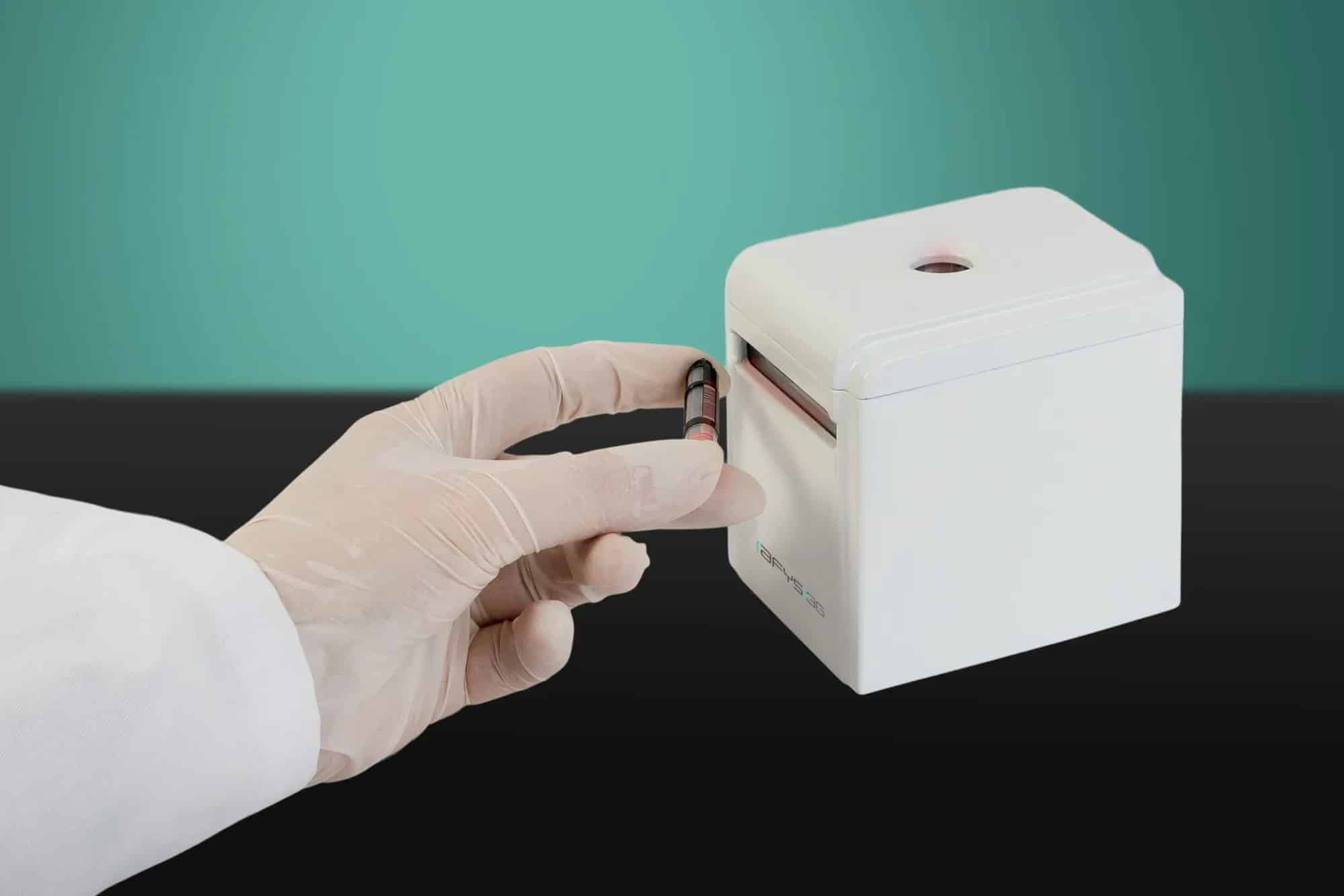 The AFYS3G Tube Reader Delta10 scans 1D barcodes and 2D Data-Matrix codes in less than a second