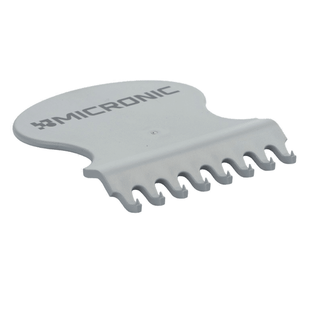 Micronic manufactures a range of manual push cap decapping tools, including the Manual Decapper-1 (designed to remove a single push cap), the Manual Decapper-8 (designed to remove a row of eight push caps), and the Manual Decapper-8 Aluminum (designed to remove a row of eight push caps from frozen tubes). All manual decappers help researchers quickly and easily remove TPE push caps from tubes.