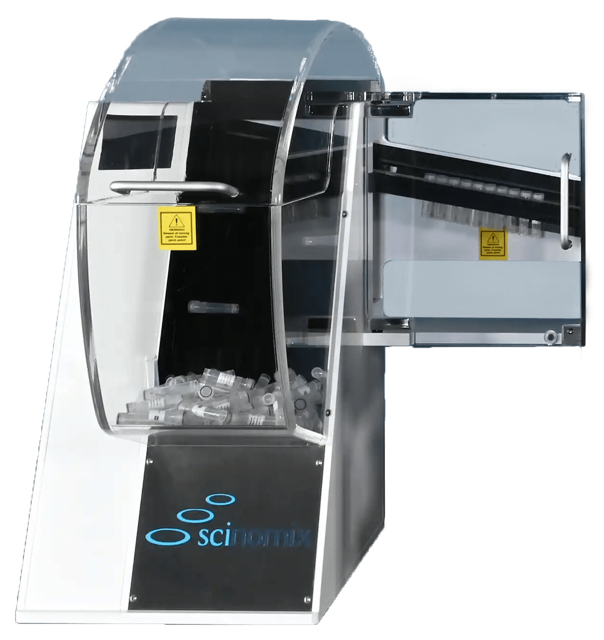 The Scinomix VXQ can handle multiple tube types at once, ranging from 0.5ml to 15.0ml in size.