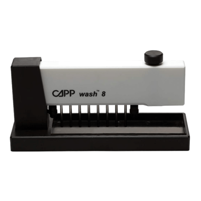 Much attention has been paid to the ease of use, compatibility, and safety of all devices, with several safety mechanisms built in. Finally, we offer a cost-effective plate washer from CAPP, which can accommodate 8, 12, or 16 channels. This plate washer is perfect for small scale plate washing.